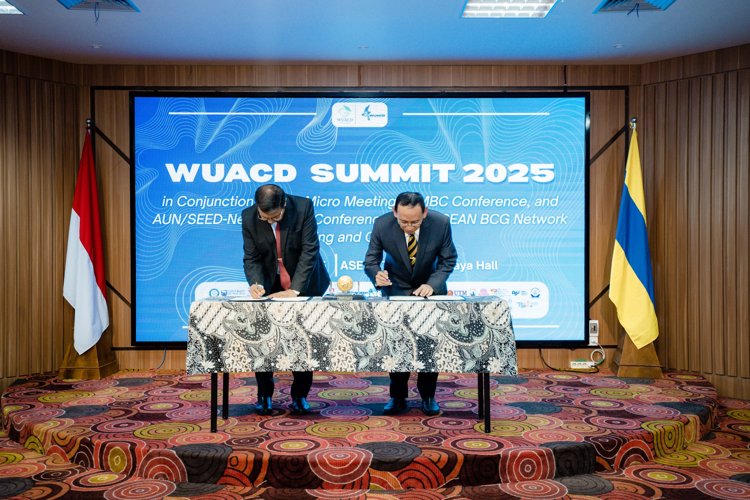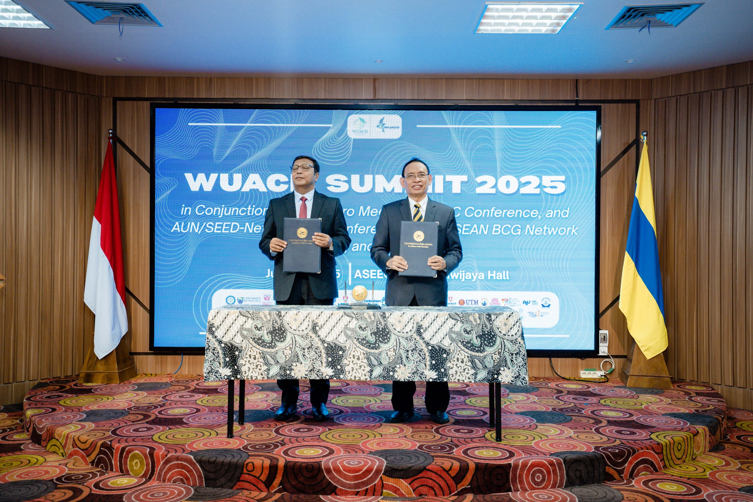 The MoU signing was held on the second day of the WUACD Summit 2025 in Conjunction with AMBC 2025 and AUN/SEED-NET Regional Conference 2025: ASEAN BCG Network Meeting and Conference on June 14, 2025. It took place in Majapahit Hall, ASEEC Tower, Universitas Airlangga. Prof. Dr. Muhammad Nasih S.E., M.T., Ak, the Rector of Universitas Airlangga and also the President of the WUACD, and Prof. Dr. M. Iqbal Choudhary, the Coordinator General of COMSTECH, officially signed the MoU at the event as a commitment to strengthen cooperation between esteemed institutions in science, technology, and higher education. This event marked the first step in addressing problems faced by the community within the countries of OIC members. COMSTECH’s commitment as a powerful catalyst for science and technology development to support socio-economic growth among its member states, combined with WUACD’s network of universities expertised in local community engagement, offers both institutions the opportunity to transform academic research into real-life impact. The initial plan marks the commitment to the upcoming collaboration as the start of future cooperation between the two associations. The next step, WUACD, in partnership with COMSTECH, is finalizing preparations to do a pilot project in the form of international community development in three different locations with three different issues to address.